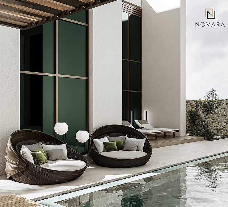 As per Novara Interiors' experience in the UAE, many of our clients these days designate that outdoor living is as important to them as indoor space. This importance brings with it details of exterior functionality and design requirements especially in Dubai, taking into consideration the careful integration of architecture with landscape design, and a hefty price tag.